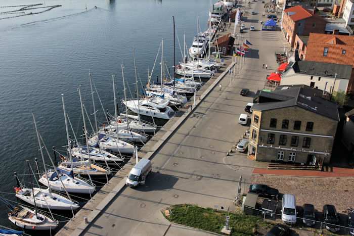 | 22.04.2011 - 9:11 Uhr - Kappeln/Schlei: Hafen und Stadt Ansichten von oben - aus dem Pierspeicher Südseite Gastliegerhafen im Nordhafen Foto: Eckhard Schmidt - Kappeln - (C) 2011 |