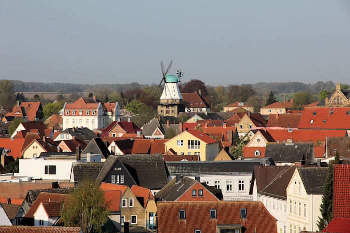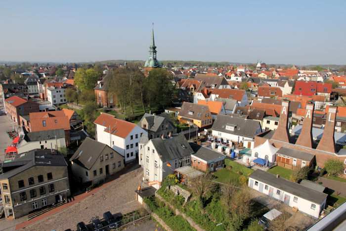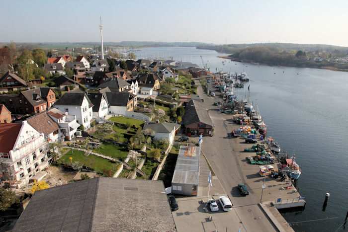 | 22.04.2011 - 9:13 Uhr - Kappeln/Schlei: Hafen und Stadt Ansichten von oben - aus dem Pierspeicher Westseite Mühle Amanda Innenstadt Foto: Eckhard Schmidt - Kappeln - (C) 2011 |