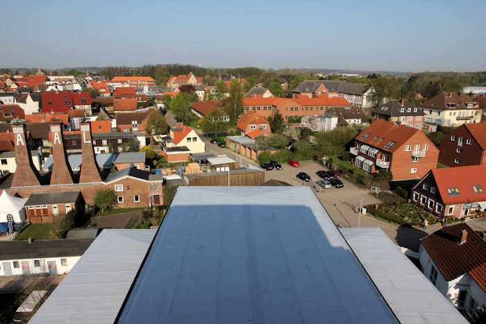 | 22.04.2011 - 9:12 Uhr - Kappeln/Schlei: Hafen und Stadt Ansichten von oben - aus dem Pierspeicher Westseite Innenstadt Foto: Eckhard Schmidt - Kappeln - (C) 2011 |