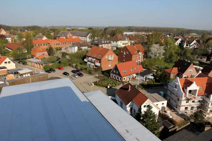 | 22.04.2011 - 9:11 Uhr - Kappeln/Schlei: Hafen und Stadt Ansichten von oben - aus dem Pierspeicher Südseite Innenstadt Foto: Eckhard Schmidt - Kappeln - (C) 2011 |