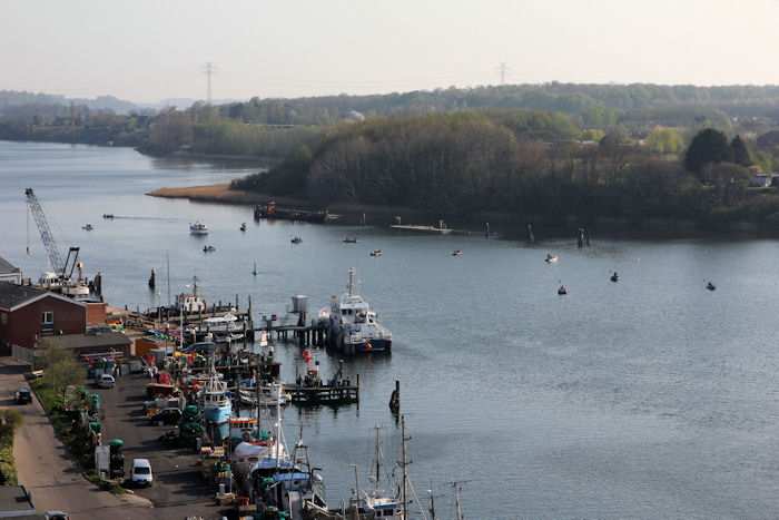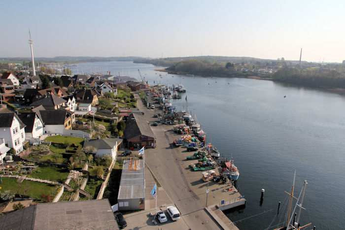 | 22.04.2011 - 9:14 Uhr - Kappeln/Schlei: Hafen und Stadt Ansichten von oben - aus dem Pierspeicher Nordseite Fischereihafen Foto: Eckhard Schmidt - Kappeln - (C) 2011 |