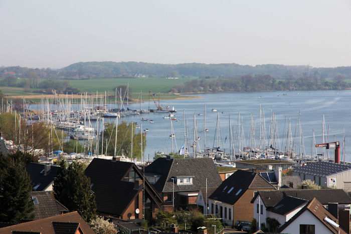 | 22.04.2011 - 9:12 Uhr - Kappeln/Schlei: Hafen und Stadt Ansichten von oben - aus dem Pierspeicher Westseite Innenstadt Lusthof Foto: Eckhard Schmidt - Kappeln - (C) 2011 |