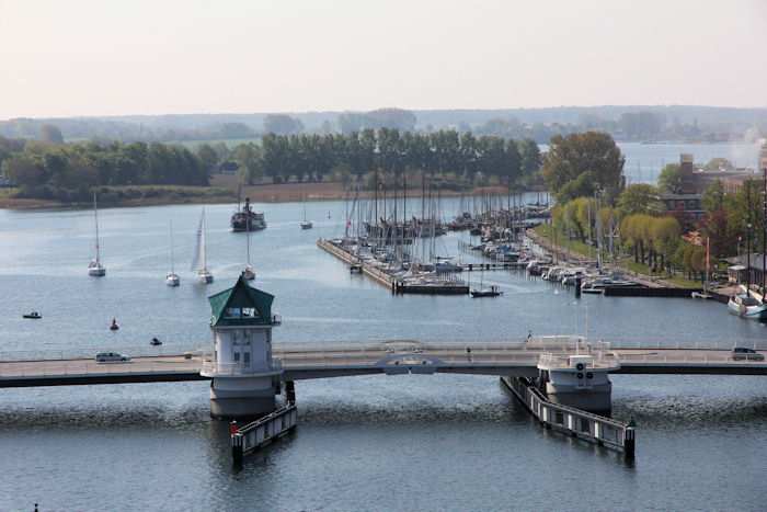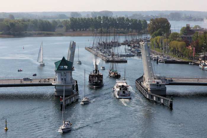 | 06.05.2011 - 10:57 Uhr - Kappeln/Schlei: Schleibrücke Brückenöffnung 10:45 Uhr mit dem Salondampfer ALEXANDRA Die ALEXANDRA passiert den Ancker-Yachthafen und folgt der NIS RANDERS oben im Bild. Über die Ostsee geht es zurück in den Heimathafen Flensburg. Foto: Eckhard Schmidt - Kappeln - (C) 2011 |