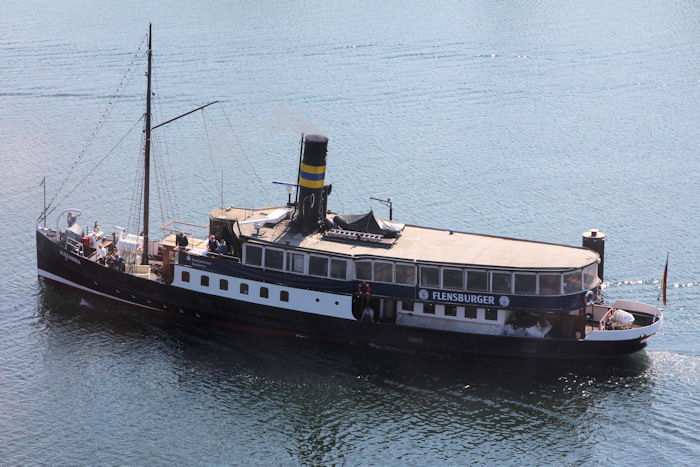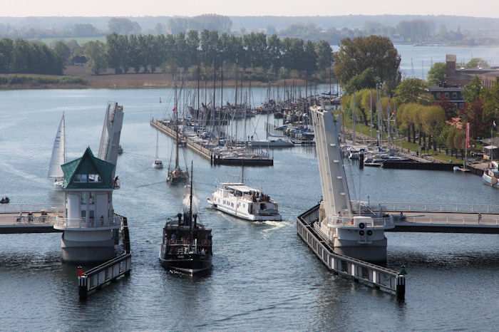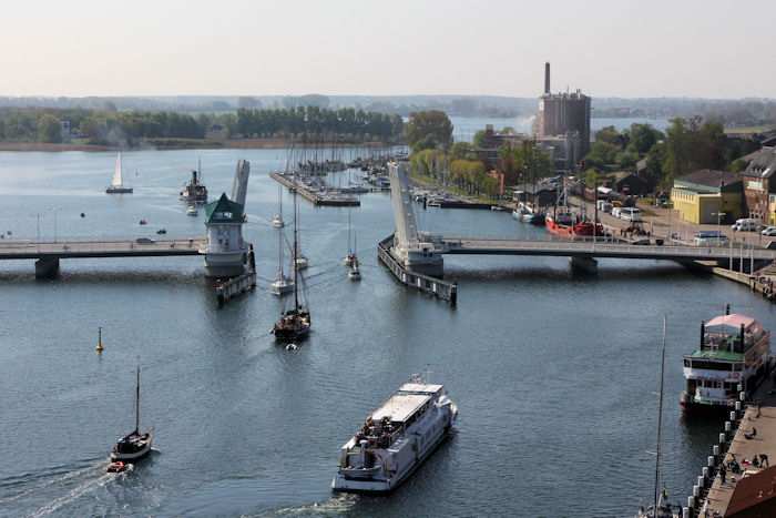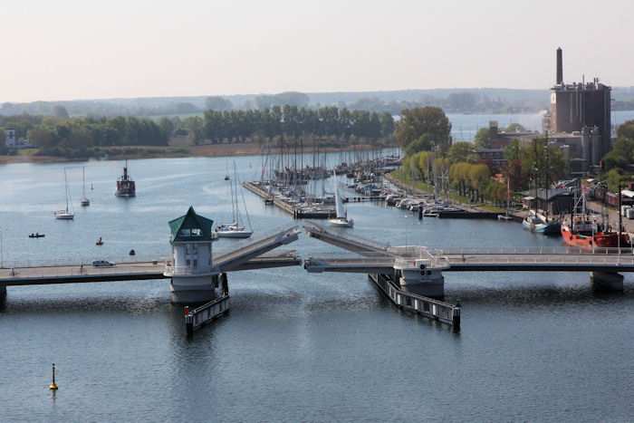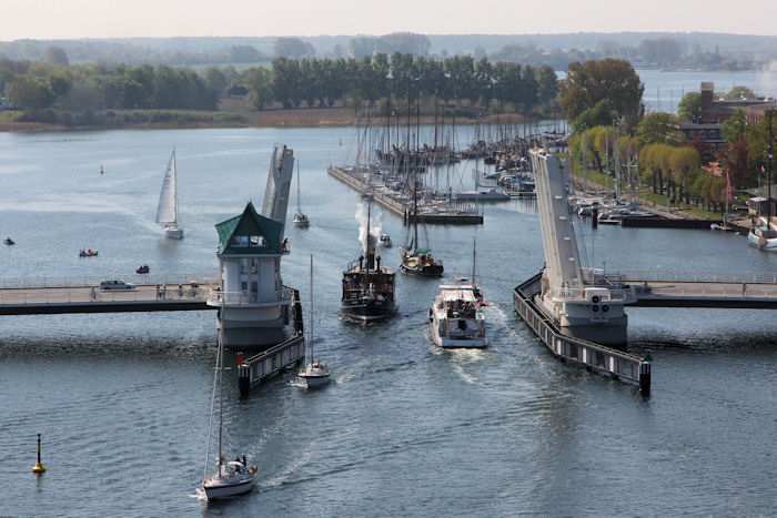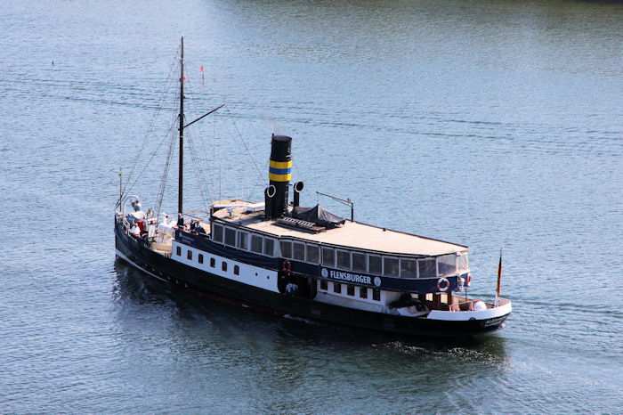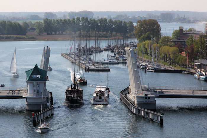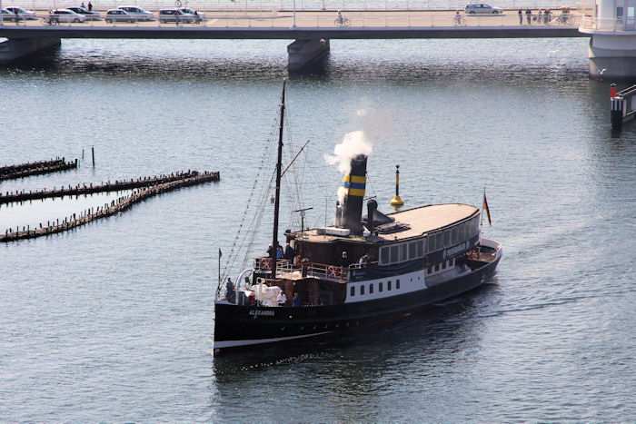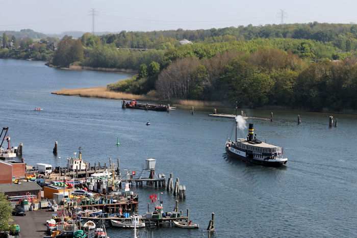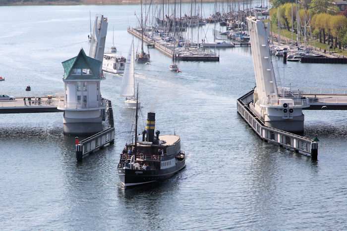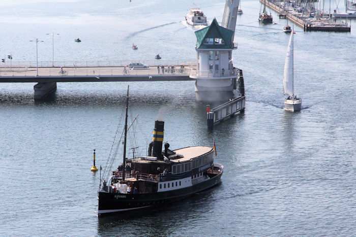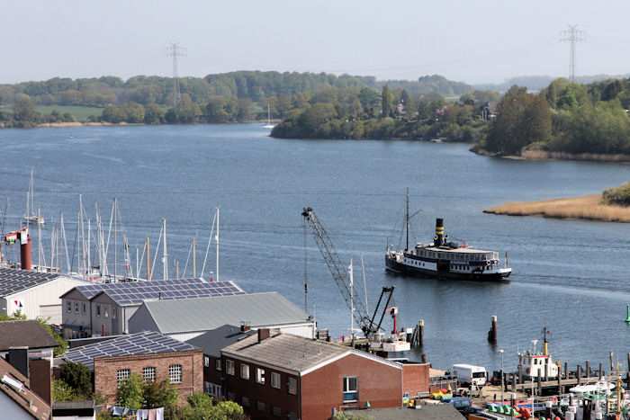 | 06.05.2011 - 10:54 Uhr - Kappeln/Schlei: Schleibrücke Brückenöffnung 10:45 Uhr mit dem Salondampfer ALEXANDRA Die ALEXANDRA passiert den PK-Speicher im Nordhafen. Foto: Eckhard Schmidt - Kappeln - (C) 2011 |