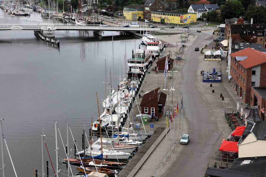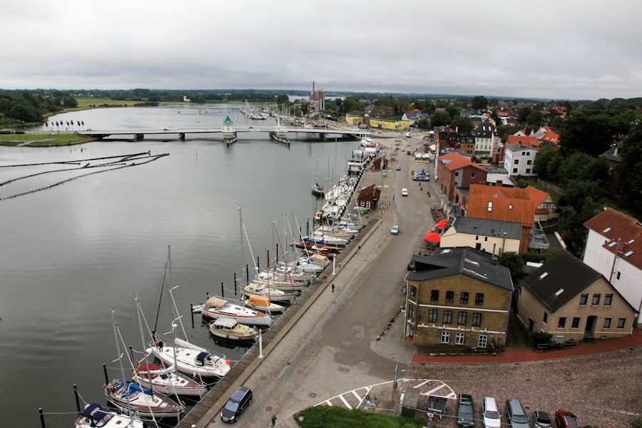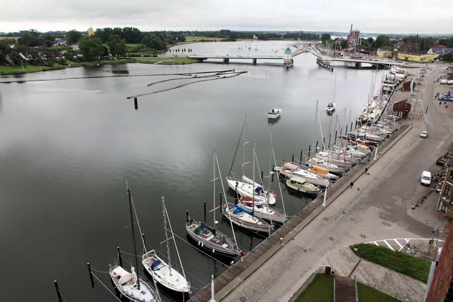 | 15.07.2011 - 8:49 Uhr - Kappeln/Schlei: PK-Speicher im Nordhafen 9. Obergeschoss - Ostseite - Aussicht Gastliegerhafen Foto: Eckhard Schmidt - Kappeln - (C) 2011 |