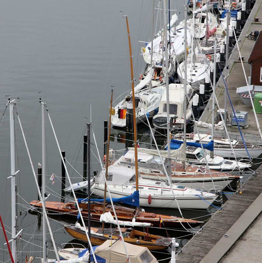 | 15.07.2011 - 8:45 Uhr - Kappeln/Schlei: PK-Speicher im Nordhafen 10. Obergeschoss - Südseite - Aussicht Nordhafen Auch beim Hafenmeisterbüro haben wegen dem Sturm an den beiden letzten Tagen zahlreiche Segelboote festgemacht. Foto: Eckhard Schmidt - Kappeln - (C) 2011 |