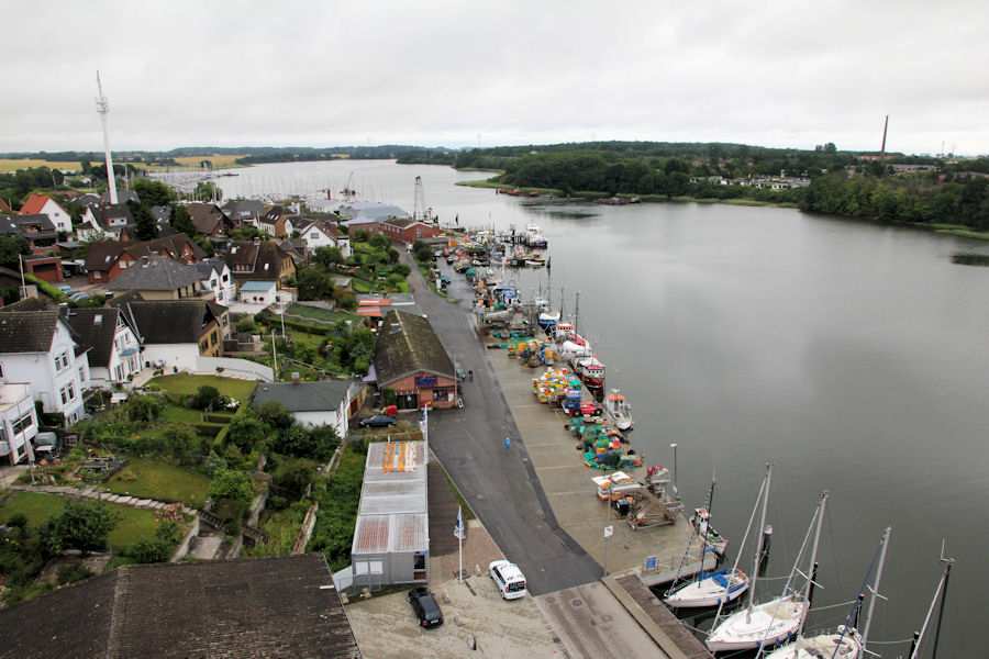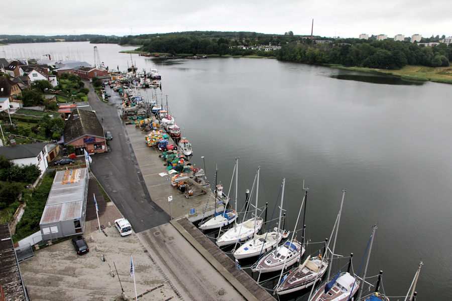 | 15.07.2011 - 8:47 Uhr - Kappeln/Schlei: PK-Speicher im Nordhafen 10. Obergeschoss - Nordseite - Aussicht Fischereihafen Foto: Eckhard Schmidt - Kappeln - (C) 2011 |