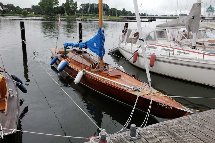 | 15.07.2011 - 9:15 Uhr - Kappeln/Schlei: PK-Speicher im Nordhafen Gastliegerhafen In der Box 5 hat eine klassische Yacht festgemacht. Foto: Eckhard Schmidt - Kappeln - (C) 2011 |