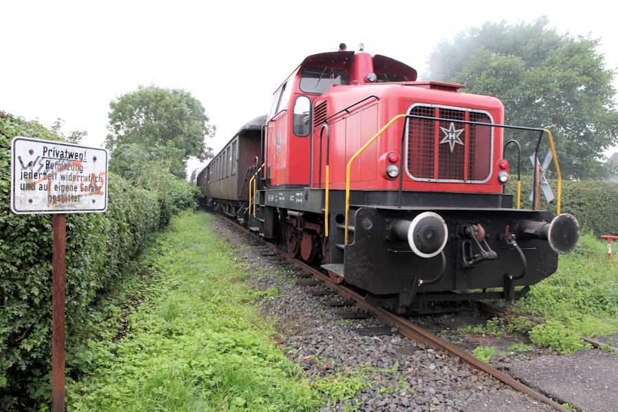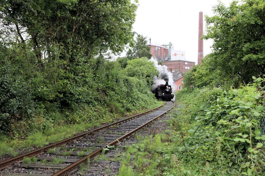 | 24.07.2011 - 14:00:46 Uhr - Kappeln/Schlei: Angelner Dampfeisenbahn 2. Tagesfahrt von Kappeln nach Süderbrarup und zurück Der Zug hat pünktlich den Bahnhof in Kappeln verlassen. Es regnet immer noch leicht in Kappeln. Foto: Eckhard Schmidt - Kappeln - (C) 2011 |