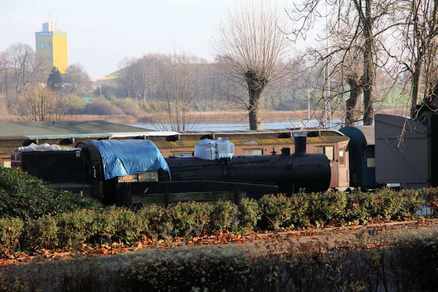 | 21.11.2011 - 13:15 Uhr - Kappeln/Schlei: Angelner Dampfeisenbahn Dampflok S1916 - Kesselreparatur - Einbau Schornstein Die Dampflok S1916 wird zurück in den Lokschuppen geschoben. Foto: Eckhard Schmidt - Kappeln - (C) 2011 |