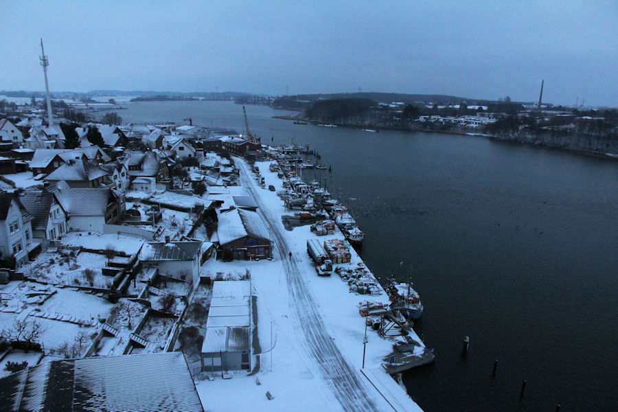 | 27.01.2012 - 8:19 Uhr - Kappeln/Schlei: Winterbilder Ausblick vom 10. / 9. OG des PK-Speichers im Nordhafen 10. OG - Südseite Foto: Eckhard Schmidt - Kappeln - (C) 2012 |