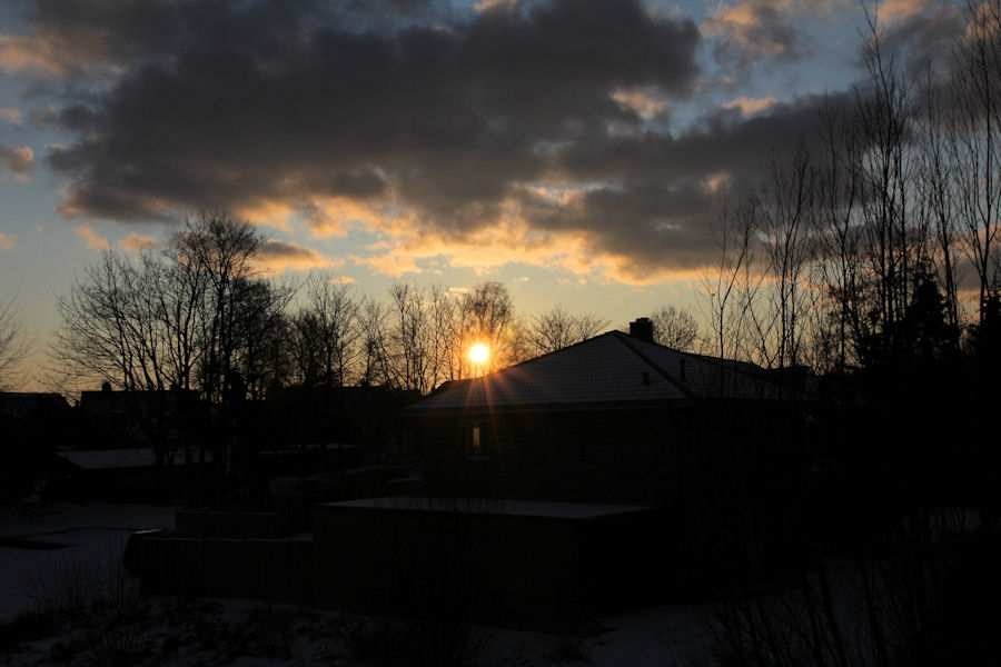 | 02.02.2012 - 16:24 Uhr - Kappeln/Schlei: Dothmark Blick nach Osten (Loitmark) und nach Südwesten (Sonne) Blick vom Erdgeschoss in Richtung Osten. Der Silo der Getreide AG in Loitmark wird noch von der Sonne angestrahlt. Sonnenuntergang: 16:59 Uhr Foto: Eckhard Schmidt - Kappeln - (C) 2012 |