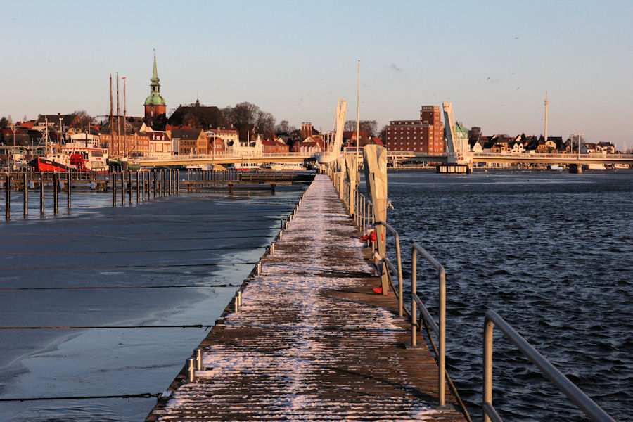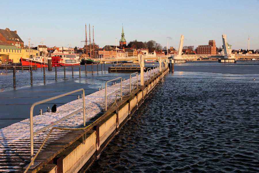 | 09.02.2012 - 9:00 Uhr - Kappeln/Schlei: Winter Februar 2012 Eis- und Schneelage im Bereich des Hafens Schleibrücke - Nordseite Blick in Richtung Nordhafen Foto: Eckhard Schmidt - Kappeln - (C) 2012 |