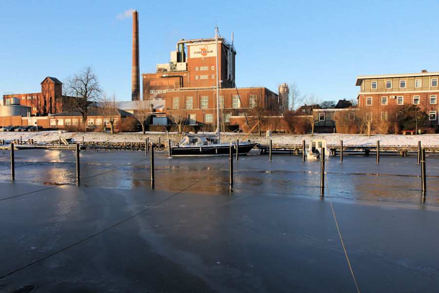 | 09.02.2012 - 8:43 Uhr - Kappeln/Schlei: Winter Februar 2012 Eis- und Schneelage im Bereich des Hafens Cremilk-Werk ASC-Yachthafen Winterlieger an der Innenbrücke Foto: Eckhard Schmidt - Kappeln - (C) 2012 |