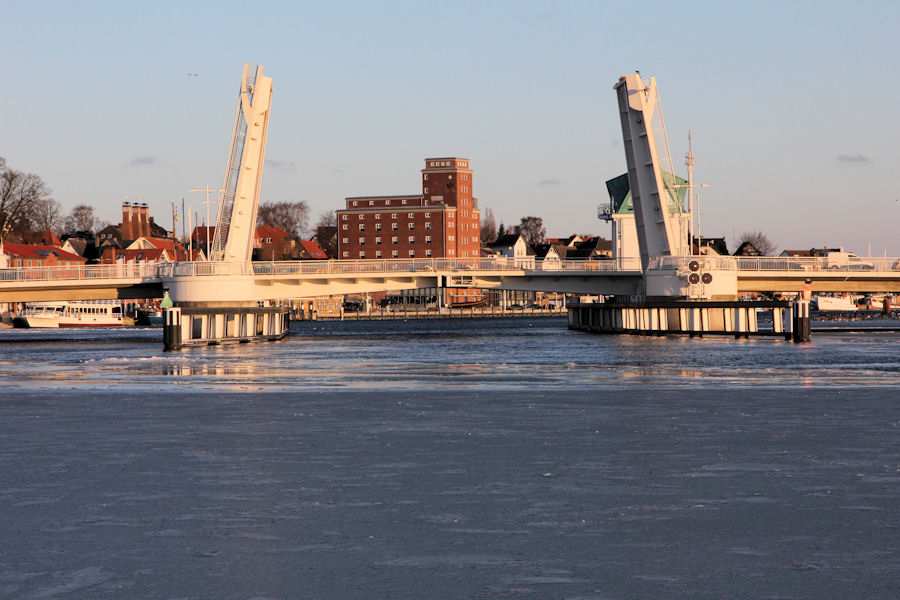 | 09.02.2012 - 8:48 Uhr - Kappeln/Schlei: Winter Februar 2012 Eis- und Schneelage im Bereich des Hafens Schleibrücke Südlich der Brücke gibt es noch eine geschlossene Eisdecke. Foto: Eckhard Schmidt - Kappeln - (C) 2012 |