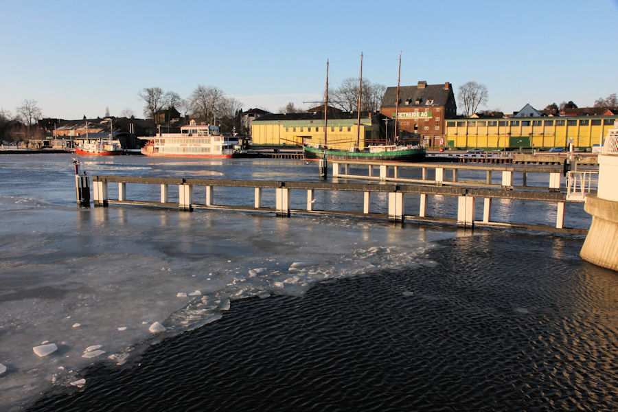 | 09.02.2012 - 8:40 Uhr - Kappeln/Schlei: Winter Februar 2012 Eis- und Schneelage im Bereich des Hafens Museumshafen Eislage: Durch den Nordostwind und den eingehenden Strom wird das Eis im Bereich des Hafens von Kappeln aufgebrochen. Die Eisschollen treiben in Richtung Arnis. Schneelage: In den letzten Tagen gab es keinen Schneenachschub mehr. Foto: Eckhard Schmidt - Kappeln - (C) 2012 |
