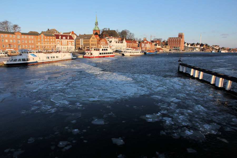 | 09.02.2012 - 9:05 Uhr - Kappeln/Schlei: Winter Februar 2012 Eis- und Schneelage im Bereich des Hafens Foto: Eckhard Schmidt - Kappeln - (C) 2012 |