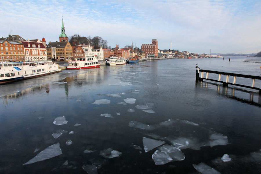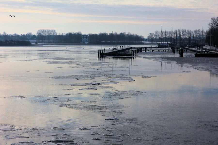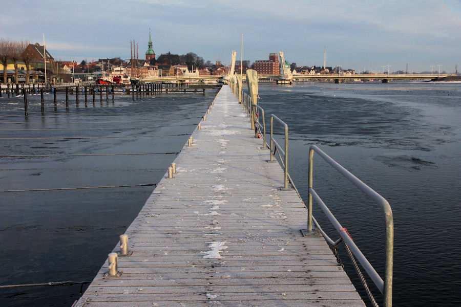 | 13.02.2012 - 9:12 Uhr - Kappeln/Schlei: Winter Februar 2012 Eis- und Schneelage im Bereich des Hafens Schleibrücke Foto: Eckhard Schmidt - Kappeln - (C) 2012 |