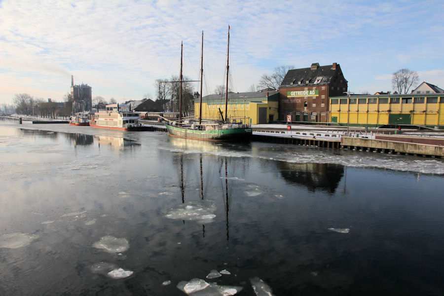 | 13.02.2012 - 9:24 Uhr - Kappeln/Schlei: Winter Februar 2012 Eis- und Schneelage im Bereich des Hafens Nordhafen Foto: Eckhard Schmidt - Kappeln - (C) 2012 |