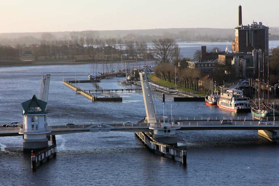 | 15.02.2012 - 8:46 Uhr - Kappeln/Schlei: PK-Speicher im Nordhafen 10. Obergeschoss - Südseite - Aussicht Schleibrücke Heringszaun Foto: Eckhard Schmidt - Kappeln - (C) 2012 |