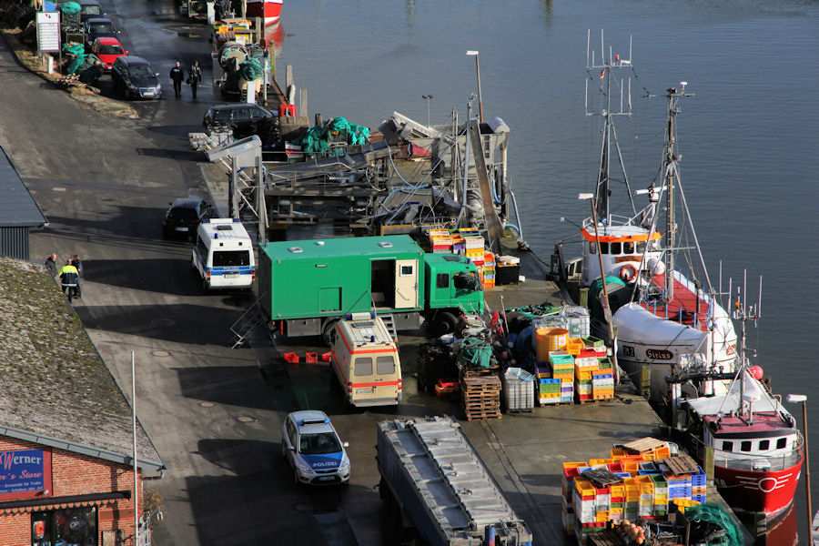 | 23.02.2012 - 10:42 Uhr - Kappeln/Schlei: Hafen Polizeitaucher aus Eutin machen Reinschiff auf dem Hafengrund Fischereihafen Fahrzeuge der Polizei und ein Rettungswagen des DRK. Foto: Eckhard Schmidt - Kappeln - (C) 2012 |