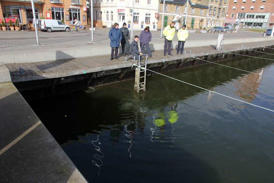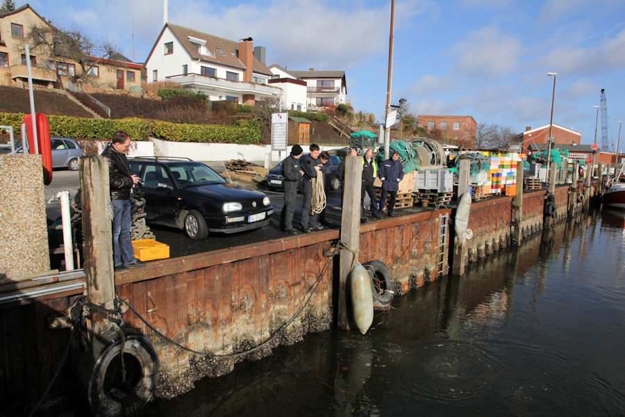| 23.02.2012 - 10:42 Uhr - Kappeln/Schlei: Hafen Polizeitaucher aus Eutin machen Reinschiff auf dem Hafengrund Fischereihafen und Gastliegerhafen Vier Polizeitaucher aus Eutin werden heute den Grund vor der Pier des Fischereihafens und des Gastliegerhafens nach Gegenständen absuchen. Während meiner Anwesenheit beim Tauchgang 1 von 2 wurden keine Gegenstände gefunden. Der letzte Tauchgang der Polizeitaucher in Kappeln fand am 10.02.2011 statt. Foto: Eckhard Schmidt - Kappeln - (C) 2012 |