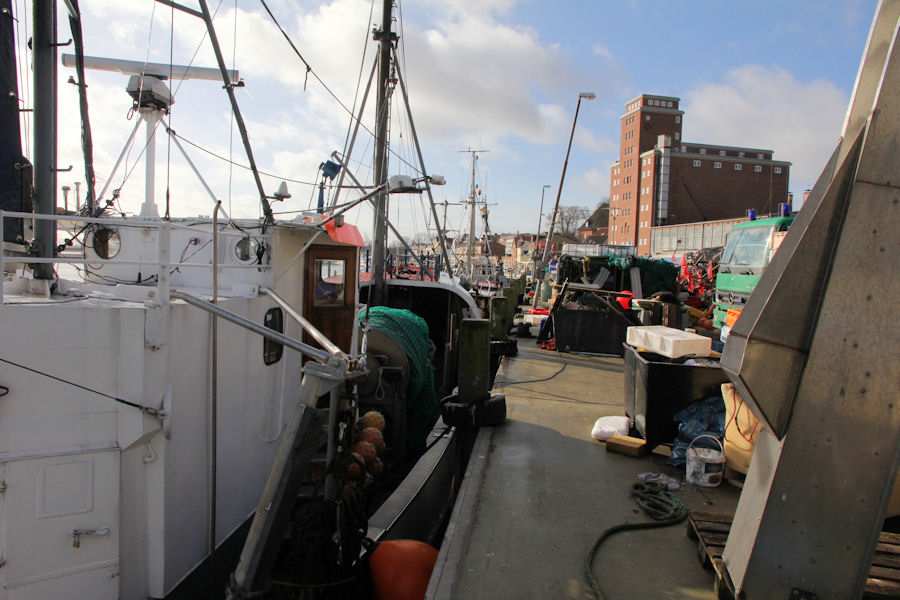 | 23.02.2012 - 11:00 Uhr - Kappeln/Schlei: Hafen Polizeitaucher aus Eutin machen Reinschiff auf dem Hafengrund Fischereihafen - Kaiabschnitt 2 Die vier Taucher erreichen den Kutter SIRIUS. Foto: Eckhard Schmidt - Kappeln - (C) 2012 |