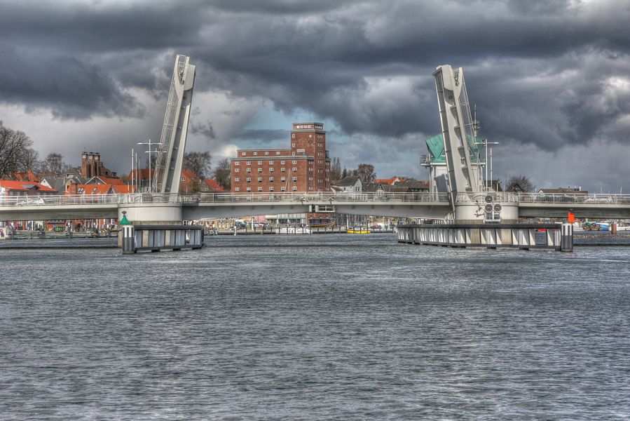 HDR-Bild 3/6 Schleibrücke in Kappeln Nördliches Klappenpaar C/D in der Stellung Verkehrslage Südliches Klappenpaar A/B in der Stellung Hochlage Tone Mapping: Compressor-Standard |