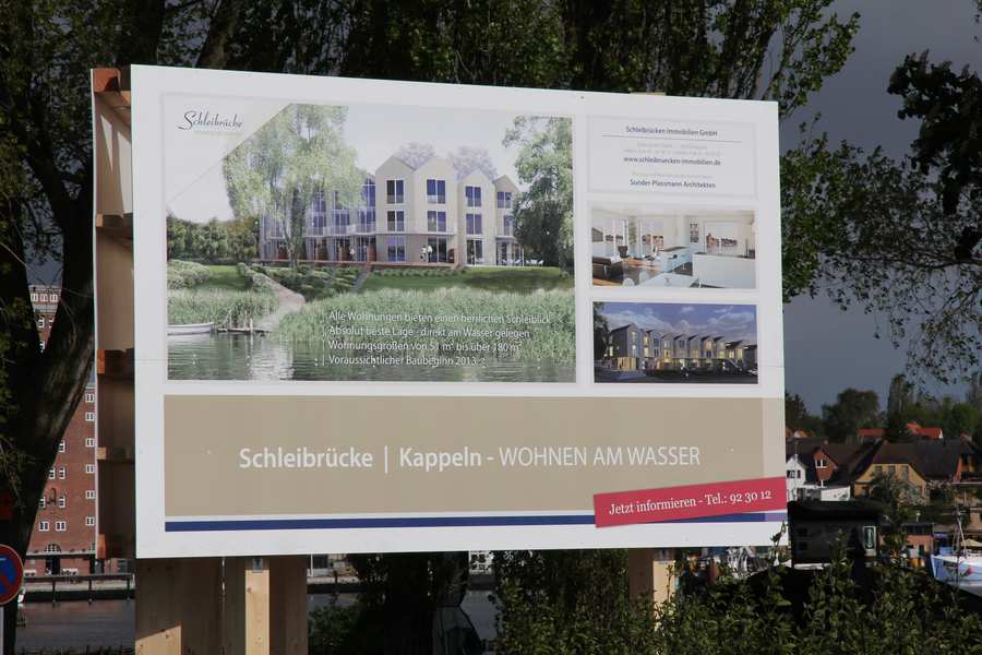 | 12.05.2012 - 9:00 Uhr - Kappeln/Schlei: Ellenberg Schleibrücke | Kappeln - Wohnen am Wasser Bild 1/6 Direkt neben der B203 wurden drei Schilder für das Projekt Schleibrücke - Kappeln - Wohnen am Wasser aufgestellt. Foto: Eckhard Schmidt - Kappeln - (C) 2012 |