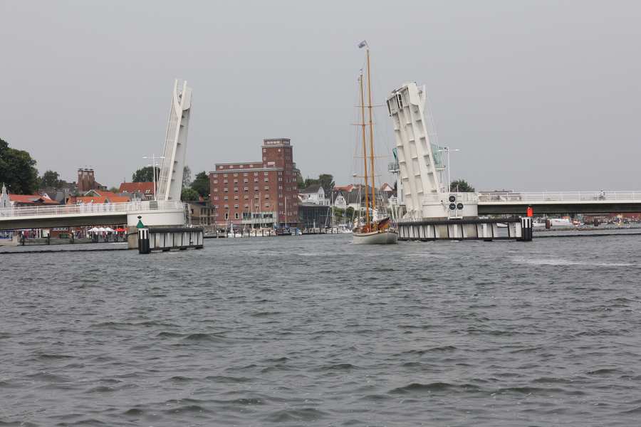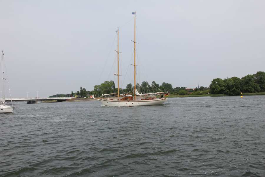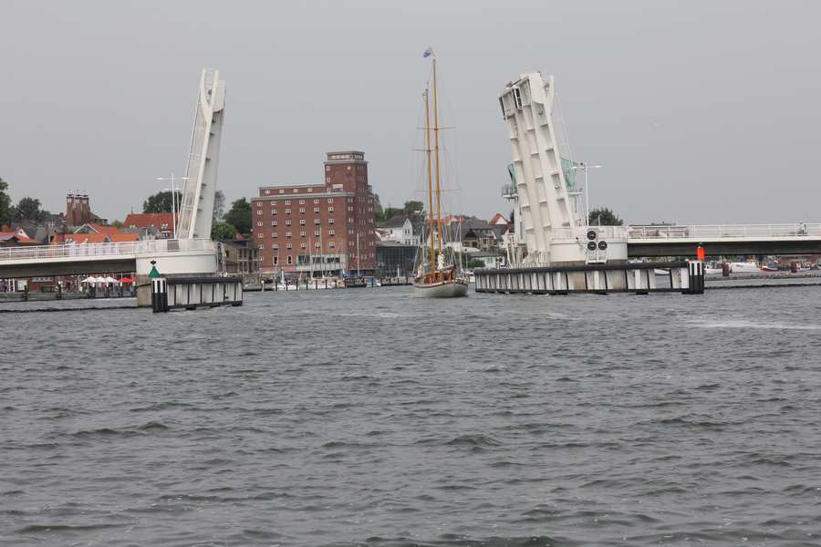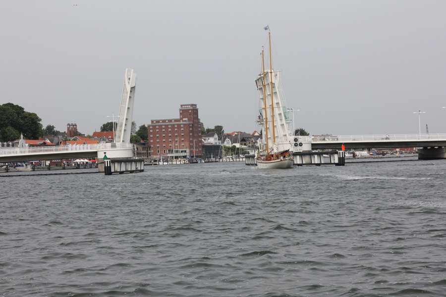 Bild 29/30 Als letztes Boot passiert die große Segelyacht die Brücke. |
