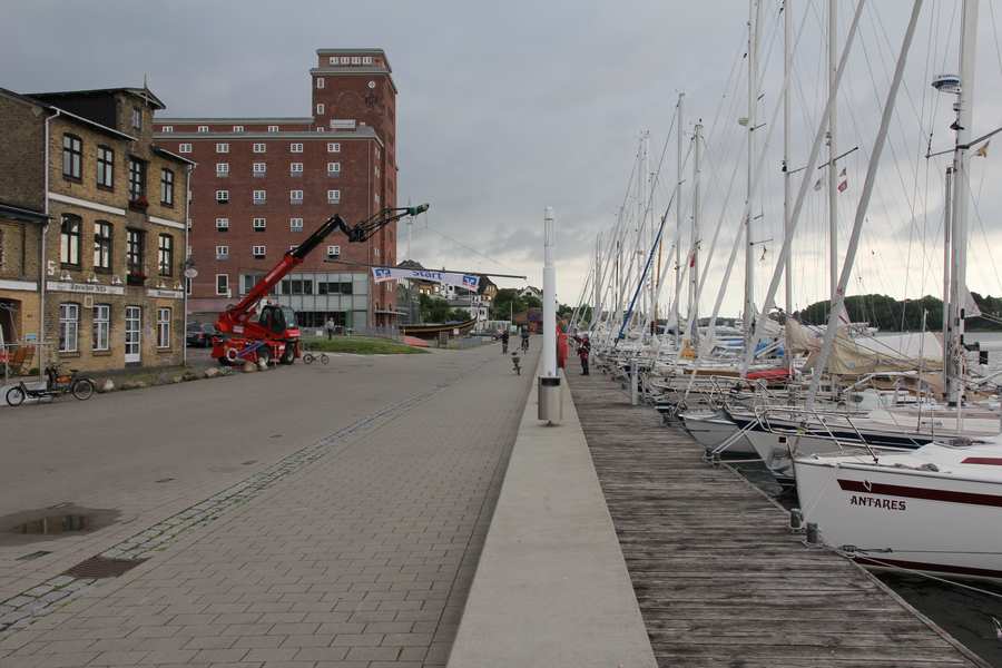 Bild 3/12 Vorbereitungen für den 6. Stadtlauf - Kappeln Rund Start beim unteren Dehnthof Ansicht vom Hafenmeisterbüro |