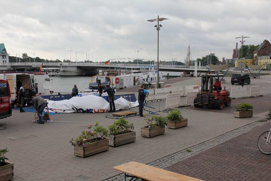 Bild 11/12 Vorbereitungen für den 6. Stadtlauf - Kappeln Rund Ziel beim Fährberg / Wassertreppe |