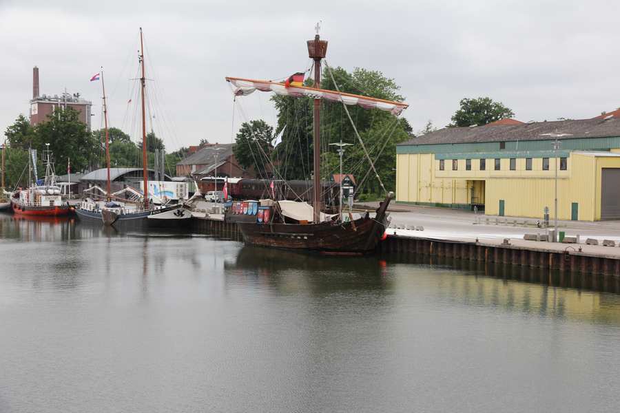 Bild 5/12 UBENA VON BREMEN - Nachbau einer Hansekogge von 1380 Die Pier des Südhafens ist noch teilweise weiß vom Kalk der ANMAR-S. |