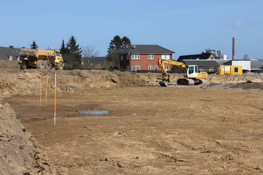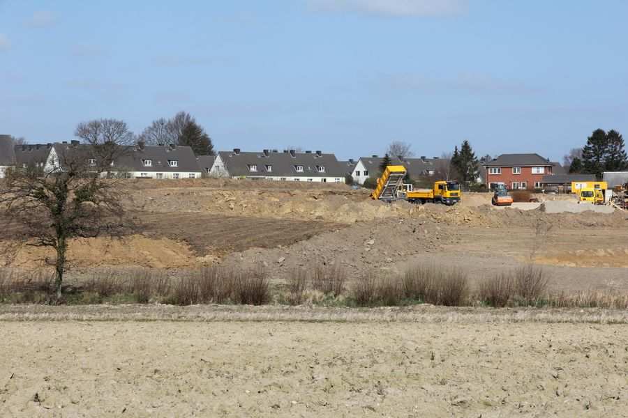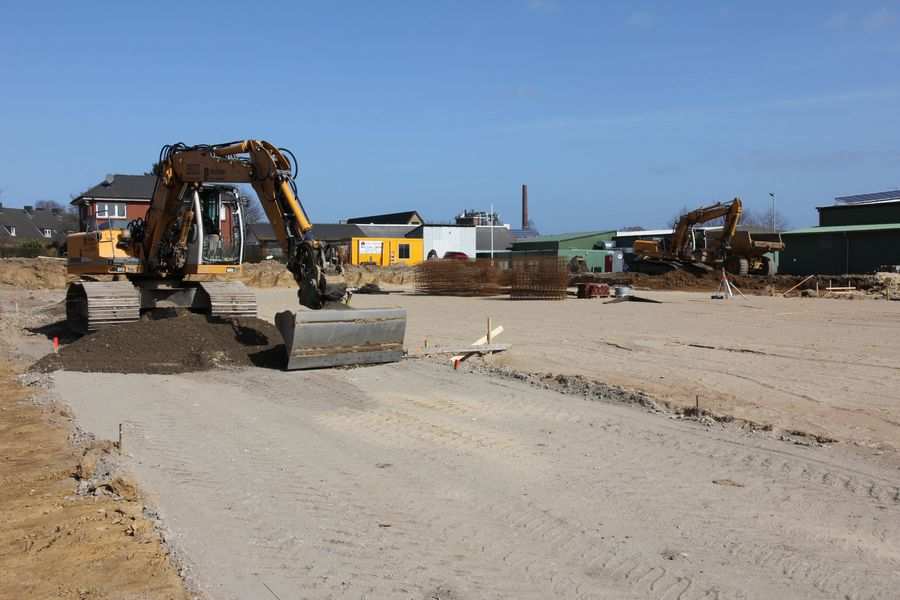 Bild 10/21 Baustraße Mitte und Baugelände Werkhalle Nordseite Hier wird gerade Boden abgetragen. Gestern habe ich von der Stelle aus noch Fotos gemacht. |