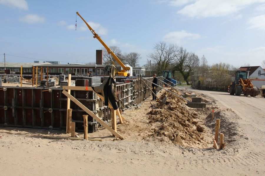 Bild 7/21 Baugelände der Werkhalle Südseite Es wird gerade die innere Schalungswand aufgestellt. |