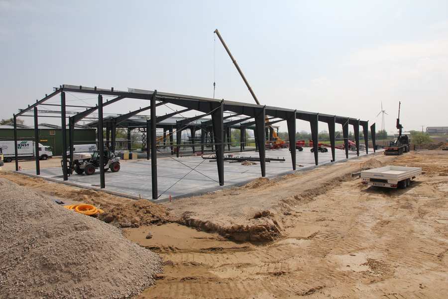 Bild 25/30 Lagerhalle Ansicht von Norden Die Stahlbauer machen gerade Mittagspause. |