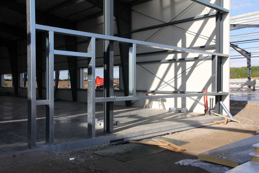 Bild 9/12 Werkhalle Ansicht von Innen Nördliche Giebelwand mit einer Schlupf-Tür links vom großen Rolltor. |