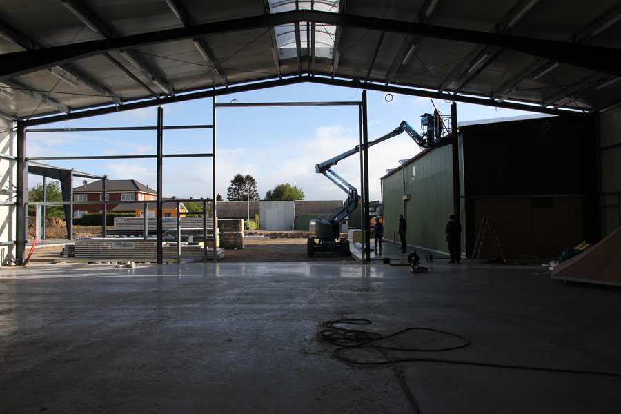 Bild 6/12 Werkhalle Ansicht von Norden Die nördliche Giebelwand soll heute noch geschlossen werden. |